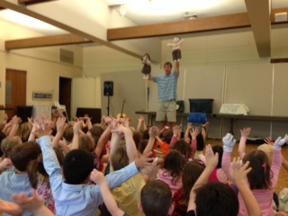 | Thank you for you interest in Tim's stories and songs. At Home: anytime you want on Facebook at From Page To Play videos Arts Alive: Summer is here and so too is another great kick-off to celebrating the arts in Falmouth, MA Tim will once again take part in this great festival of the visual and performing arts. Join Tim on Saturday, June 22nd from 11:20 - 12:20 on the Library Lawn - Main Street, Falmouth. Barefoot Books: Mini-Music Camp at Barefoot Books flagship store - 89 Thoreau Street Concord. First week session will be Monday, Tuesday and Wednesday July 1st - 3rd from 10:00am to noon. For more information contact Barefoot Books at 978-369-1770. Concord Academy: Tim will be on campus on Saturday, June 15th for the 2013 CA Reunion Weekend sharing stories and songs with the children of alumni. He will be teaming up with fellow teachers from the Milldam School who are providing child care for the event. Concord Stories and Songs: Tim will not be performing this summer at his drop-in music program at The Performing Arts Center at 51 Walden. Check back in September for dates and times. Milldam Nursery School: Tim loves going to Milldam each week where he teaches music classes on Monday and Tuesday mornings. The last music classes for the 2012-2013 are June 3rd and 4th. Congratulations to everyone heading off to kindergarten. I will see everyone else next year. For more information about the school call 978-369-4048. Sunshine Nursery School: On Wednesday, June 5th at 10:00am Tim shared his stories and songs at this Arlington preschool. For more information contact director, Gerri Pedrini at 781-646-1630. Below are pictures from the show. On the left we forgot our oars so we have to use our wands. On the right the kids are helping Sophie and Ben conjure up a magical shield. |