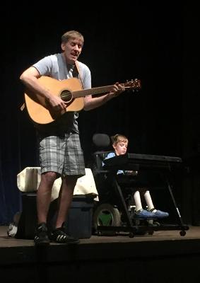 | Songs from Who I Am were first performed on stage at Camp Pok-O-MacCready Once in a Lifetime (2017) and The Rock (2018) Below are excerpts from Tim Singer's Review of Once in a Lifetime Roles are played out on stage, so that, we as audience can find pieces of ourselves up there; connecting us to the story. John’s performance was exciting and over-the-top. A perfect attitude for his character,Teddy,who wishes that he could fly. John took on his first solo ever in a show which was his camp acting debut. The song “Zig-Zag Hiking Blues” was already a camp favorite by the time the show began Nora had a particularly simple, yet connected performance as the shy girl . . . There, she was joined in song with Kate and Shea; a nice soft melody about inclusion. This theme revealed itself as the goal for the play and of the campers in it. All types of campers with plenty of different backgrounds were included into the performance, including Pok-O’s spirited and wheelchair capable camper Luke, who delivered his repeated line “I don’t care” with the comedic timing of a professional. |